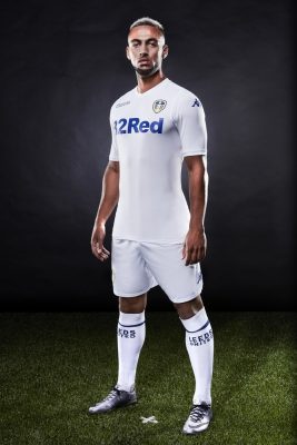 The Leeds United 2018/19 home kit is in the club’s classic all white with minor dark blue details. It uses the same v-neck design as the multi-colored away shirt.