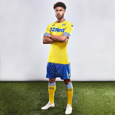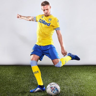 The instantly popular Leeds United 18/19 third jersey uses the yellow from The Whites crest that has often been the main color of their away kits throughout the years. The bottoms of the relatively long sleeves are in the dark blue and white stripes of the first Leeds home kits of almost a century ago. It will makes its debut during Saturday’s trip to West Bromwich Albion.