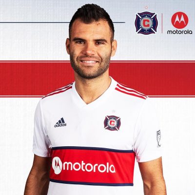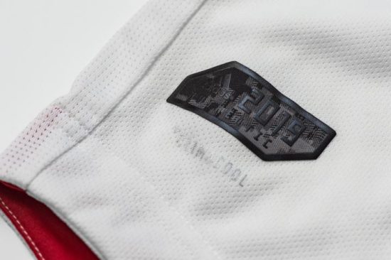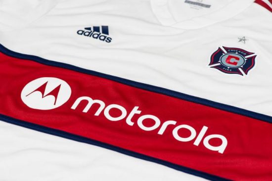 The latest Fire alternate jersey sticks with the club’s longstanding tradtion of donning white away shirts. It has a red bands across its front bordered in blue. The adidas sleeve stripes on the jersey are also red.