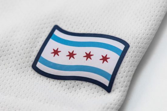 The city of Chicago’s flag is used a custom jocktag on the front of the jersey with and a Chicago Fire logo detail on the necktape.