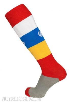 The Carnival uniform is completed with blue shorts and four-colored hooped socks.