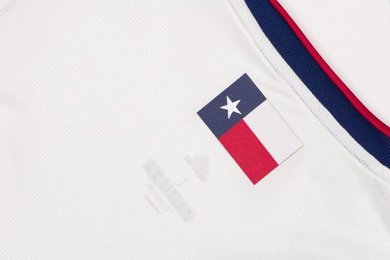 Just below the back neckline is the Texas flag which serves as a reminder that FC Dallas was the first Major League Soccer team in the state of Texas.