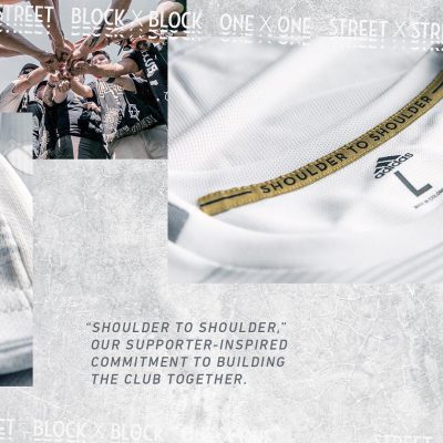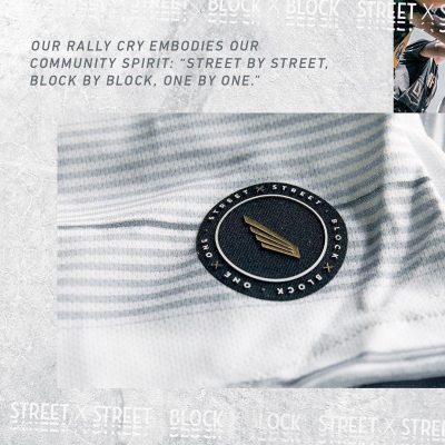 Stitched into the neckline of the jersey, “Shoulder to Shoulder” is a tribute to the LAFC Supporters and their commitment to building the Club together.
