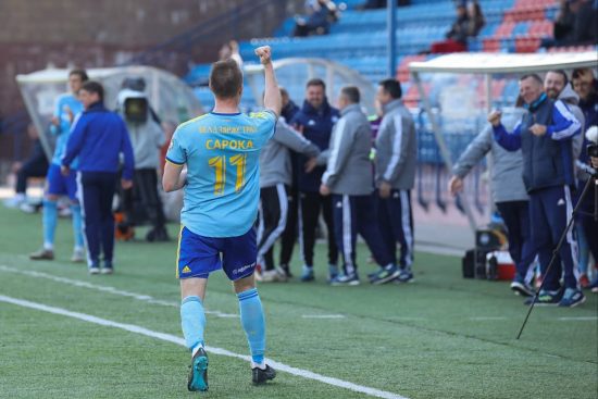 The new FC BATE Borisov jerseys use a brand new v-neck design from adidas’ 2019 teamwear catalog. The yellow home and light blue away kits are highlighted with digital dotted prints on their front in a darker color than their bases.