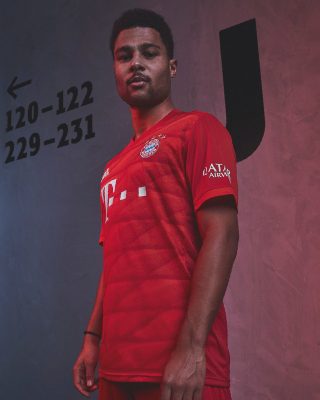 The backdrop to an unprecedented six consecutive domestic titles, the stadium’s unique red coloured, energetic lighting façade inspires the bold design of the 2019/20 Bayern home shirt.