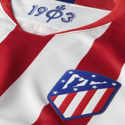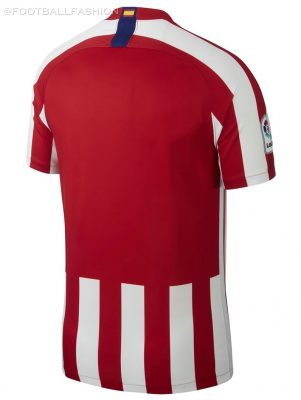 Atlético Madrid’s 19/20 home jersey features the club’s famed red and white vertical stripes on its front, sleeves and lower back. The upper two-thirds of the back is red to ensure clear visibility of player names and numbers.