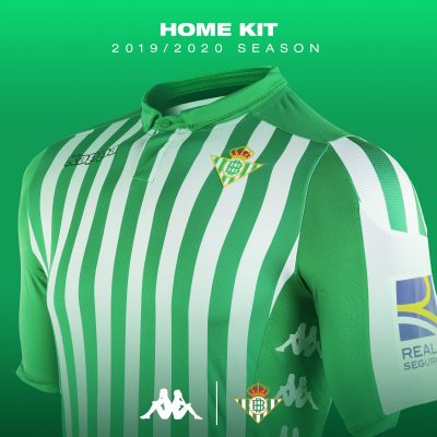 The Real Betis 2019/20 home shirt uses a new design from Kappa featuring a single-buttoned polo collar. Kappa’s Omini logo runs down each flank.