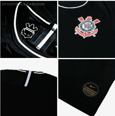 The kit uses a new crewneck Nike design with white accenting at the neckline, sleeve cuffs and upper back. An outline of the Corinthians crest is printed on the inside of the neck area.