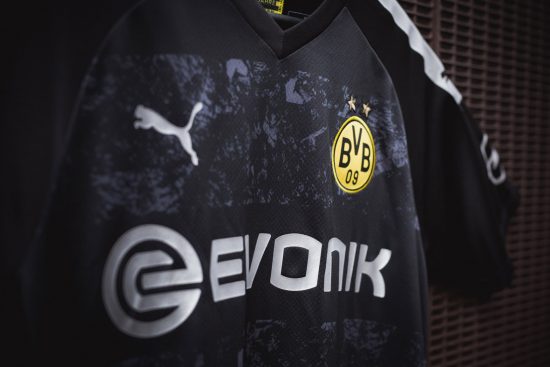 By way of an homage to steel, the Borussia Dortmund 19/20 PUMA alternate shirt is dominated by the colours black, grey and silver.
