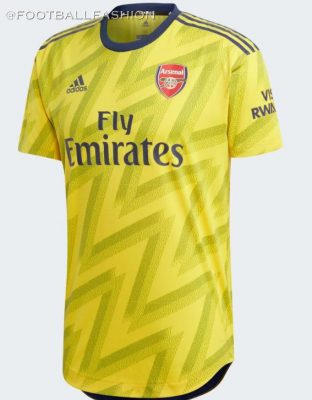 The design features a modern twist on the historic ‘bruised banana’ graphic. A minimal, shaded zig-zag pattern adorns the famous bright yellow of the Arsenal 19/20 away jersey , creating a contemporary take on the ‘90s shirt.