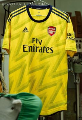 adidas Football today unveiled Arsenal’s away kit for the 2019/20 season . Inspired by the iconic Arsenal away strip, the ‘bruised banana’ seen during the early ‘90s, the new jersey celebrates the club’s history with a modern and progressive interpretation of a classic kit synonymous with Arsenal.