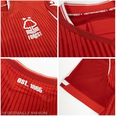 Both kits have inside neck taping reading “NOTTINGHAM FOREST” along with lower back stars and “EST. 1865” printed on their signoff areas.