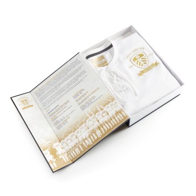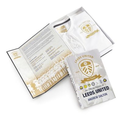 The Leeds United 2019/20 Kappa centenary kit comes in a collector’s edition presentation box and is accompanied by a hardcover copy of ‘Official History of Leeds United’ by Andrew Dalton.