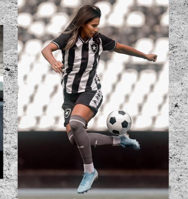 Botafogo’s 19/20 home and third kits were design with input from the club’s fans via social media outlets. Both use the same classic football shirt v-neck design. The primary shirt is in Botafogo’s unmistakable black and white stripes white the third jersey is white with black accents.