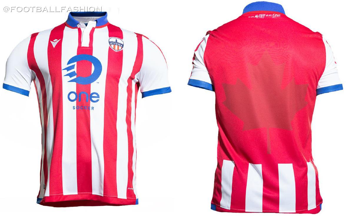 The back of the Atlético Ottawa 2020 home kit is mainly red with a tonal Canadian Maple League at its center. The CPL’s motto of “We are many, We are one” is printed in white in the jersey’s signoff area.